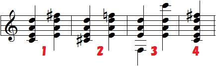 なので、次の譜例1のように進行してしまうと「お前4度堆積和音じゃなくて、ただのFsus4じゃねーか!」と突っ込まれてしまいます。