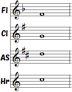 金管楽器はほとんどが移調楽器です。実音表記する楽器を探すほうが大変なくらい。