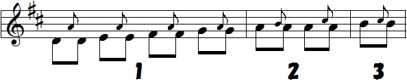 よって、同じ高さの音が連続するときには装飾音を入れて音の境目を表現するのです。